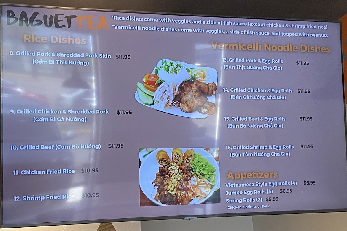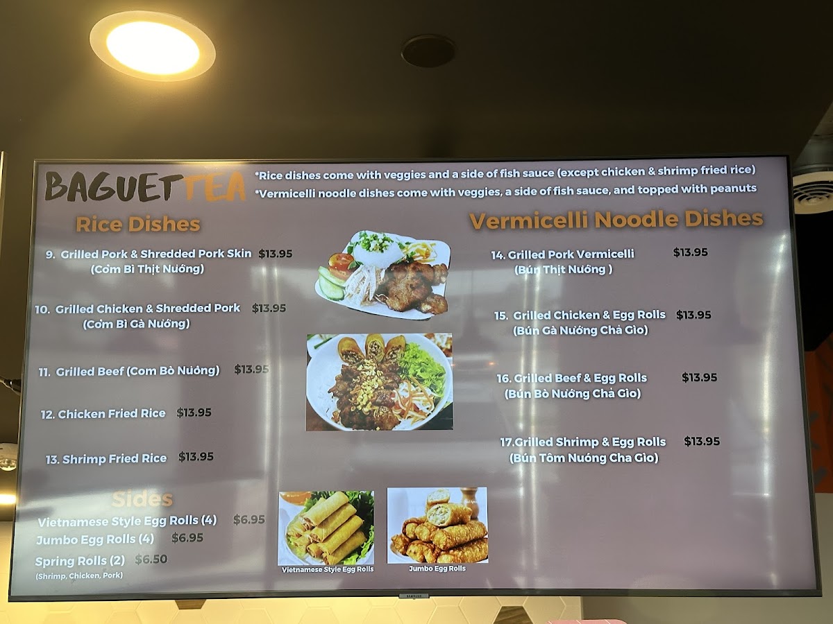 What truly sets Baguettea apart are their enticing rice and vermicelli dishes. Patrons rave about the generous portion sizes and robust flavors, making every bite a delight. Signature dishes such as the Grilled Chicken and Shredded Pork Rice Dish and the Grilled Beef Rice Dish, each priced around $10.95, satisfy both hunger and taste.
